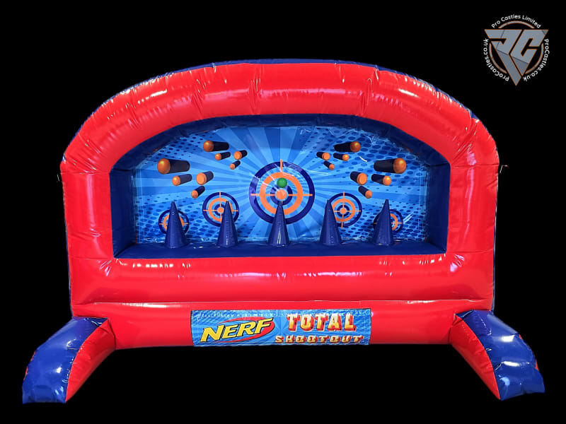 Pro Castles offer these fantastic shooting walls which are a awesome addition to any hire fleet. these can be reproduced in a number of different colors or themes. also with an added option to make them a water gun shooting wall for outdoor use.